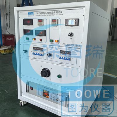 插头插座温升试验机是将插头或插座正负极短接后,尾部接在电流输出接线柱上,然后接通电流,按标准要求设定好所需试验电流及时间后,测试插头或插座的插片与导体铆合处的温升数值在经过一定的时间及电流负载后的温升数值是否符合标准要求。